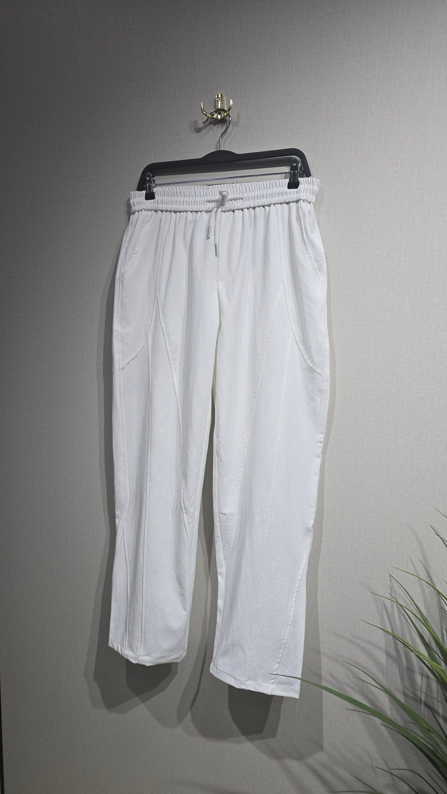 أضف لمسة من الأناقة والبساطة إلى خزانة ملابسك مع بنطال أبيض عملي ومريح. تصميمه يعطيك مظهر نظيف ومرتب، ويمنحك حرية حركة مثالية طوال اليوم سواء أثناء العمل، الخروج، أو الاستخدام اليومي في البيت.