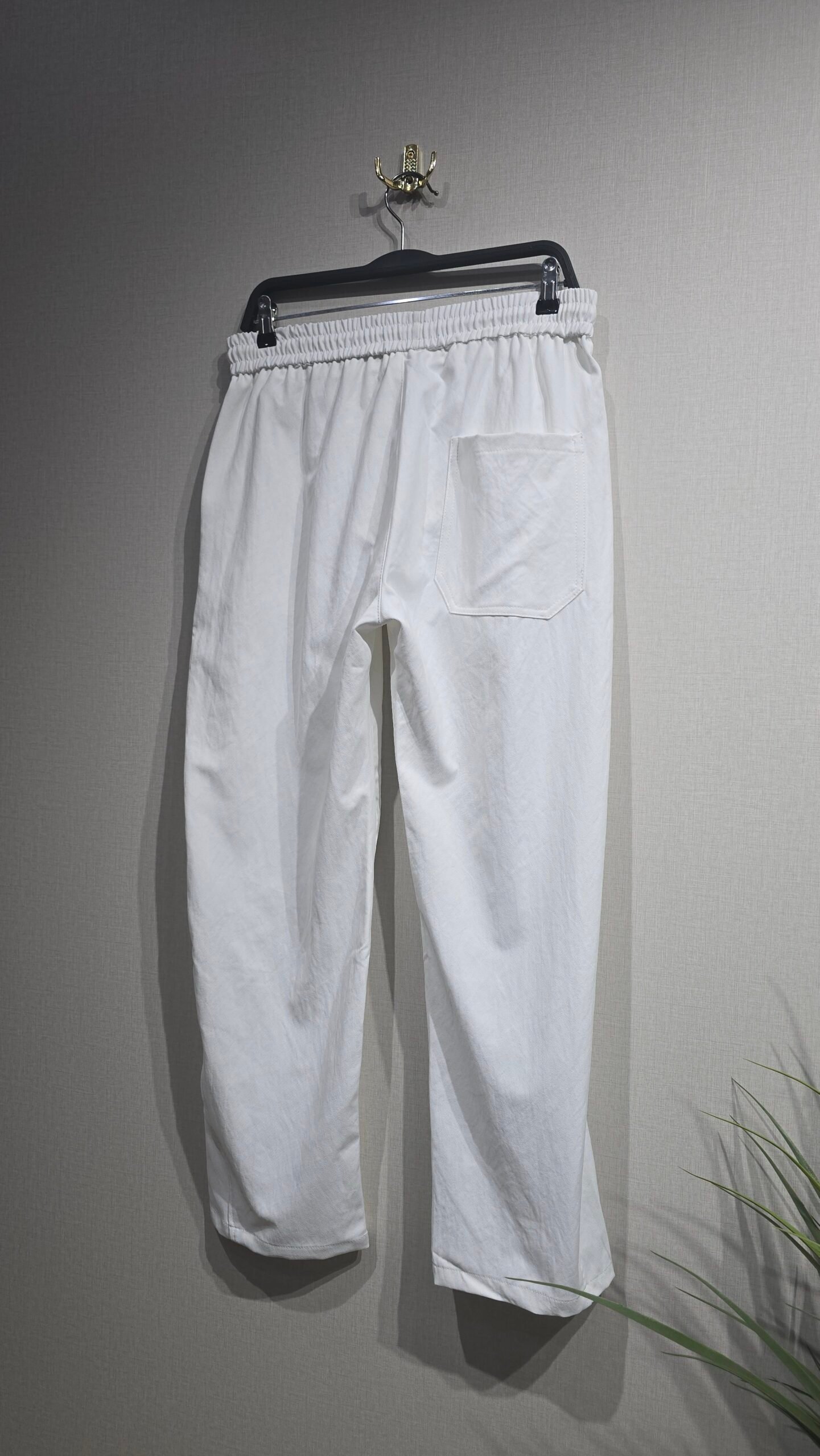 لون الأبيض النقي يجعل البنطال سهل التنسيق مع أي تيشيرت أو قميص، كما يعطيك إطلالة متجددة وراقية في كل مرة ترتديه. قصته المصممة بعناية توازن بين الراحة والأناقة، مما يجعله قطعة أساسية في أي خزانة ملابس.