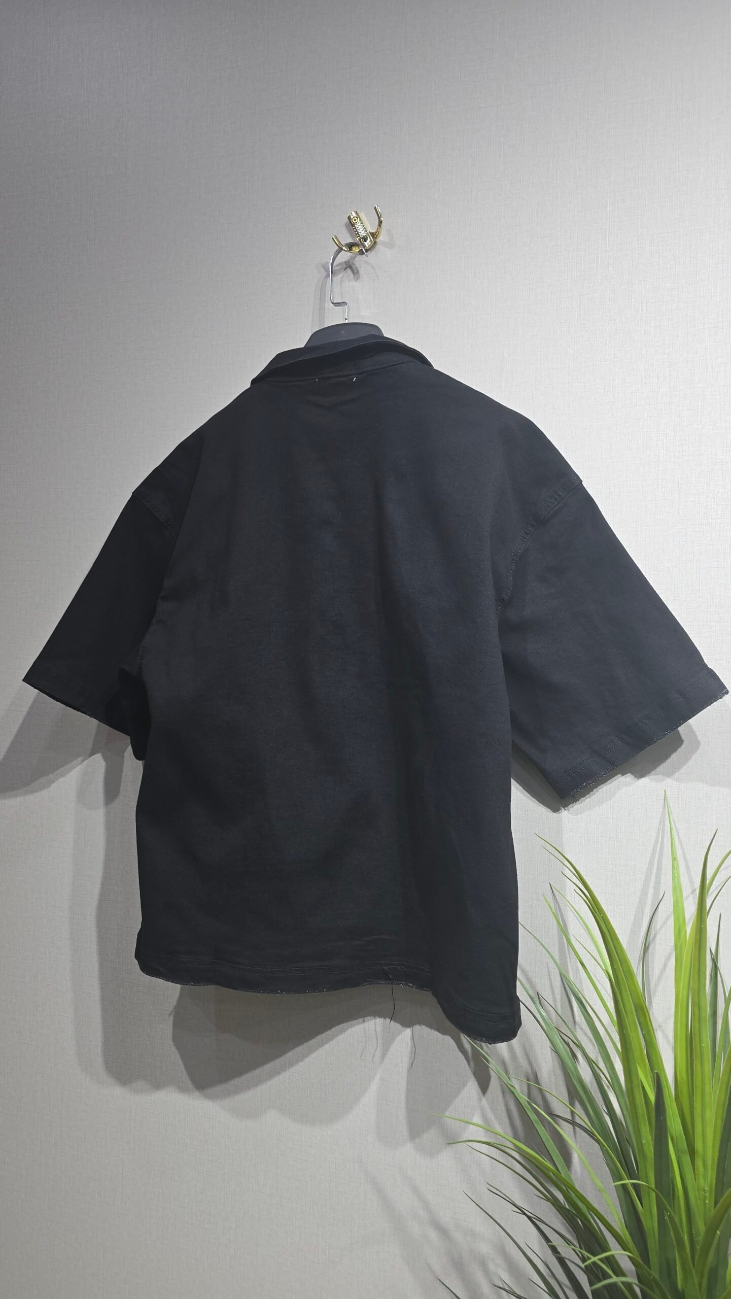 تيشرت القصة الكورية موديل حديث اسود ساده