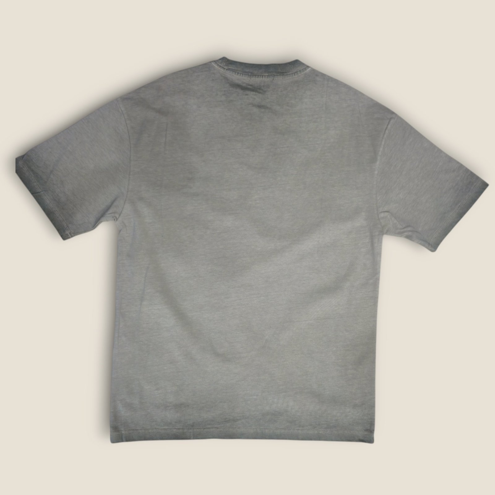 الطبعة الساحرة: تتوسط الفانيلة طبعة سوداء تبدو كـ بقعة ضبابية متلاشية أو رذاذ غامض. هذا التأثير البصري المتقن يمنح التيشيرت عمقًا دراميًا ويجعلها محط الأنظار.