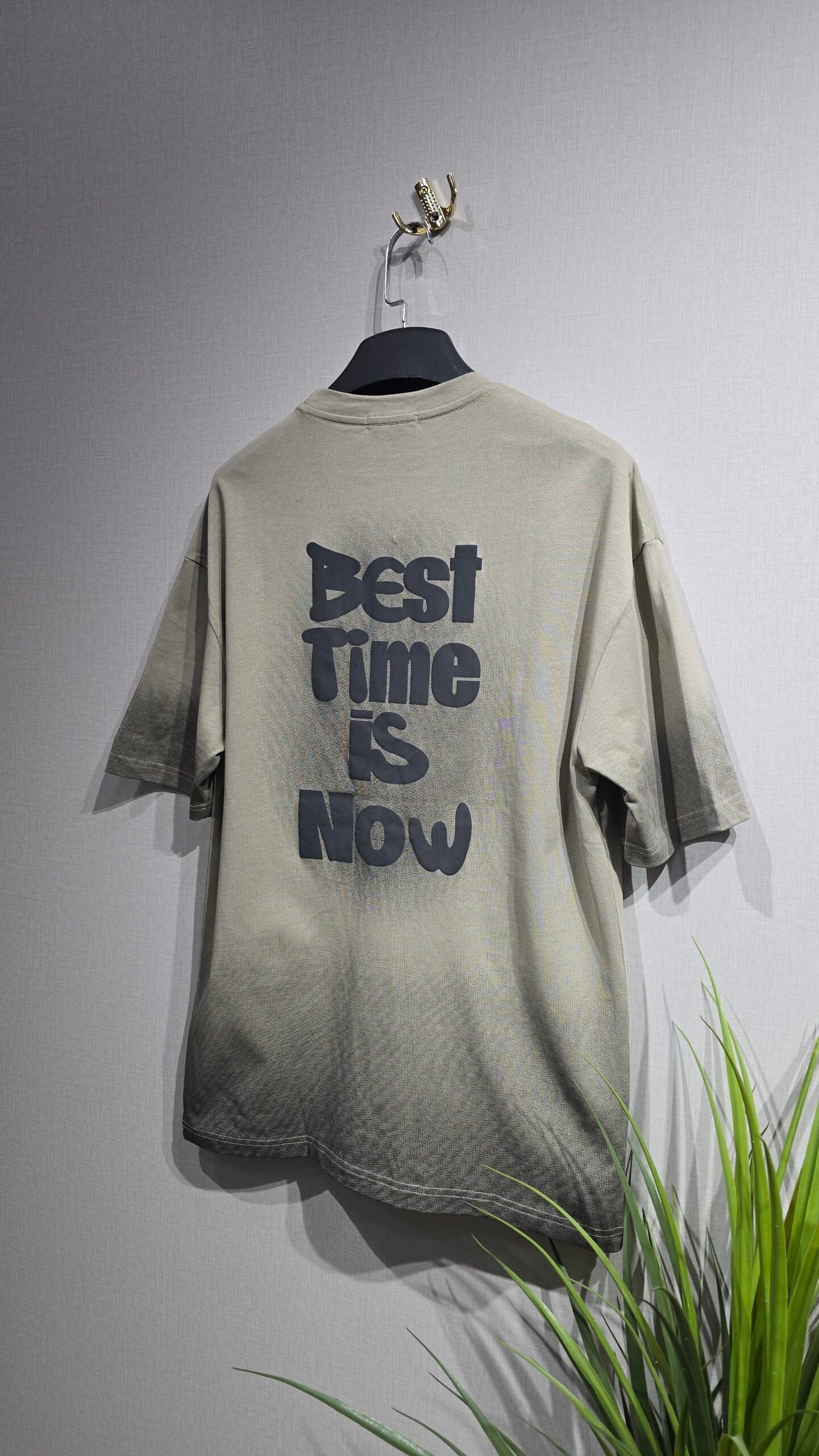 تيشيرت بتصميم مغسول يعطيه لمسة شبابية مميزة، مزوّد بعبارة BEST TIME IS NOW اللي تضيف روح إيجابية وتعطيه حضور أقوى في إطلالتك اليومية. قصّة مريحة وتفاصيل بسيطة لكنها ملفتة، يخليك تلبسه بثقة في الطلعات والكاجوال والاستايلات اليومية.